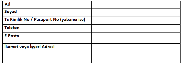 Bu çerçevede yazılı olarak yapılacak başvurular, işbu formun çıktısı alınarak;